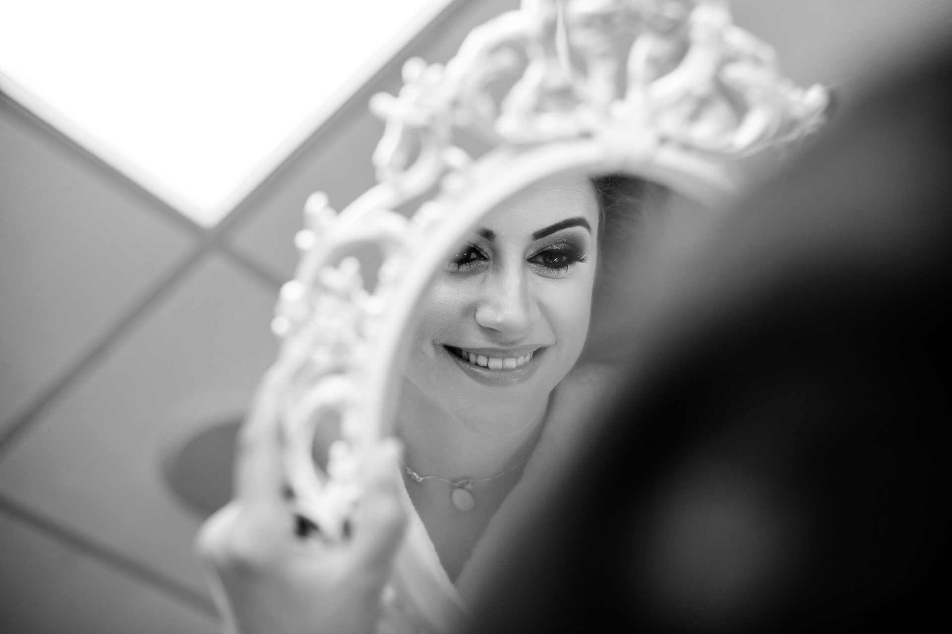 Também o olhar da primeira vez que você vai se ver vestida de noiva (ou de noivo, se também for o caso).