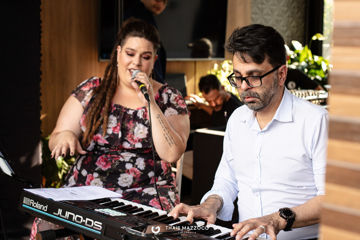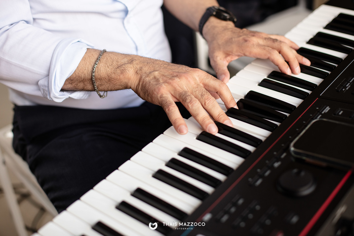 Depois a cerimônia com as avós sendo celebrantes, foi lindo, fofo, e muito divertido! E o pai do noivo tocando, eu fiquei mais emocionada do que ele, com certeza. Ele já deve estar acostumado, pois faz parte há muitos anos da orquestra Del Chiaro .