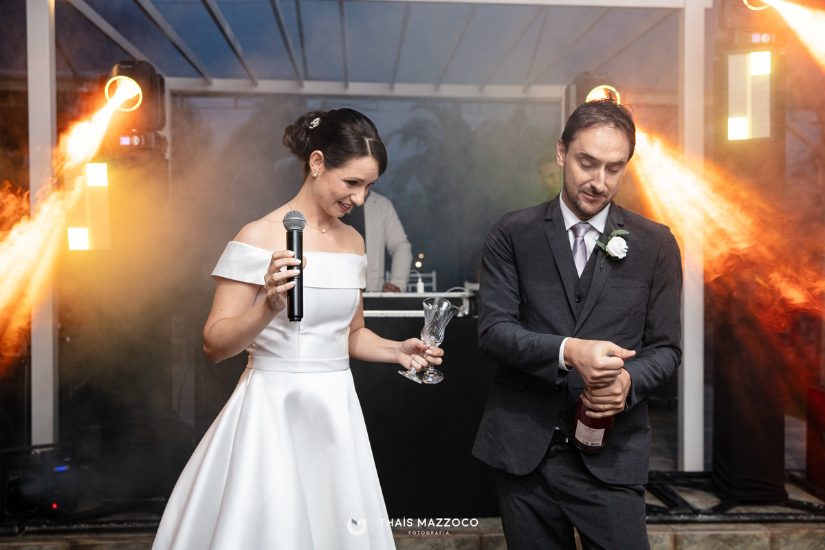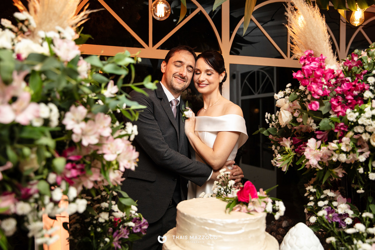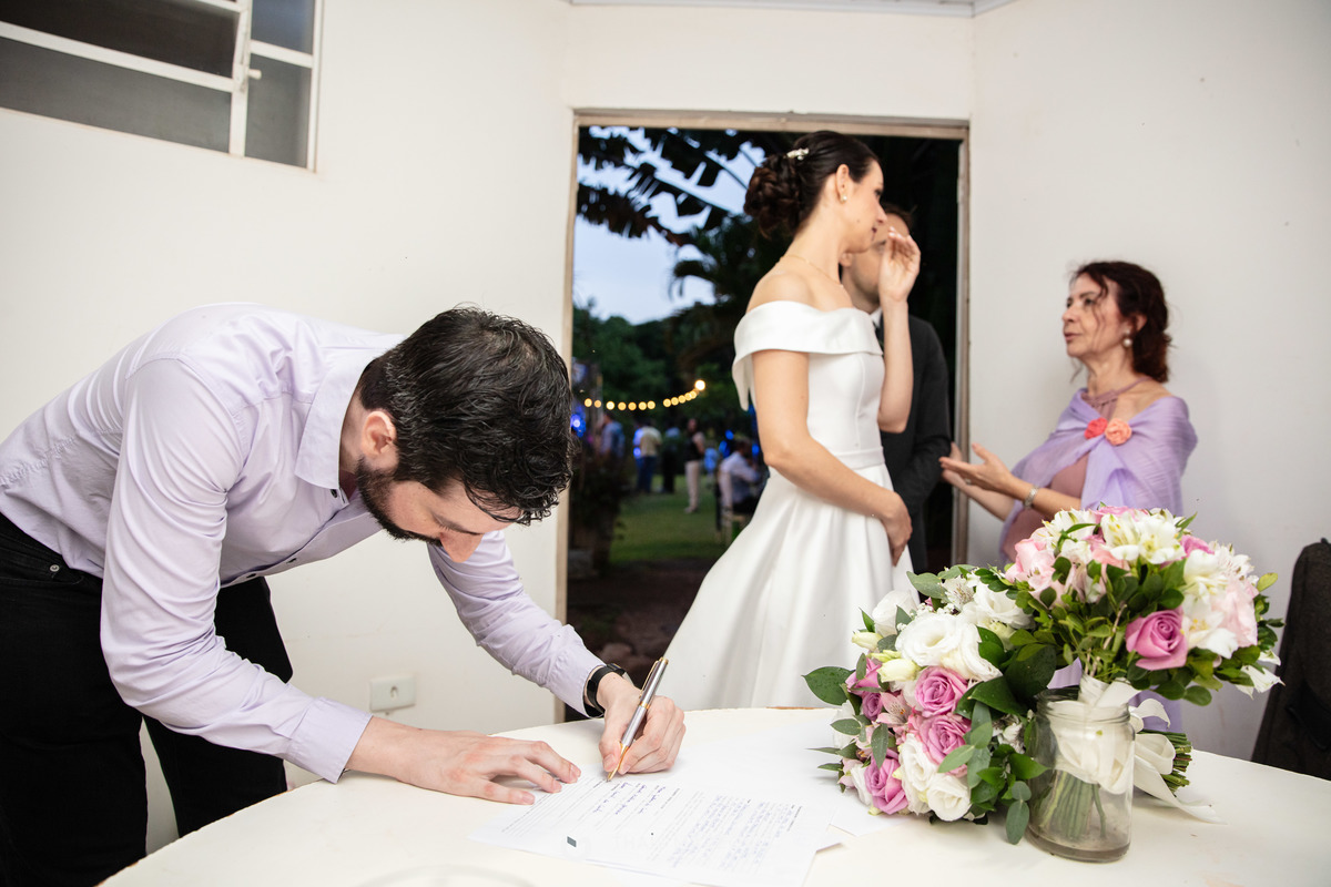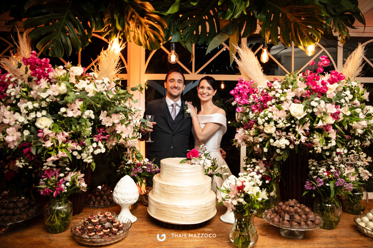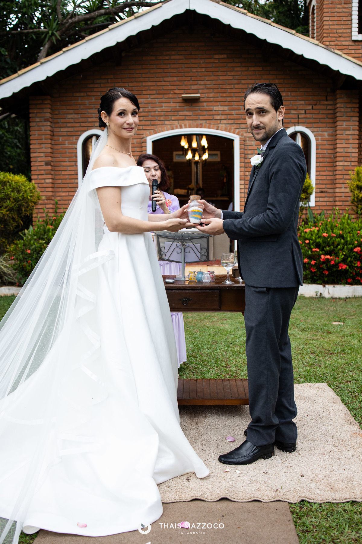 A cerimônia sem padrinhos deixou tudo mais dinâmico e com mais tempo para o que realmente importa, a união do casal, que contou com a cerimônia das areias coloridas, repleta de significados e conexão com a natureza.