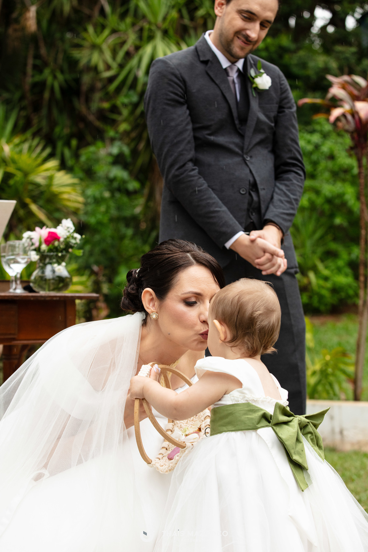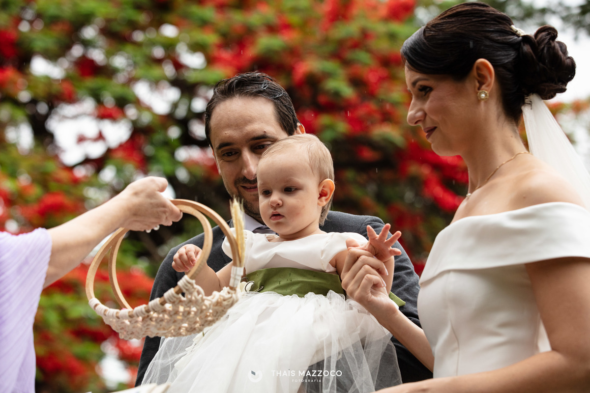 Mas o que encantou mesmo foi a filhinha deles entrando com as alianças. Tão pequenina e tão esperta!